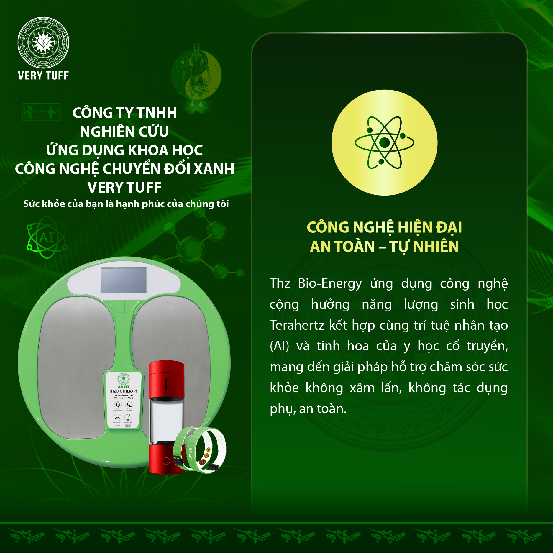 Các sản phẩm của Very Tuff ứng dụng khoa học công nghệ cao kết hợp cùng trí tuệ nhân tạo (AI) và tinh hoa của y học cổ truyền, mang đến giải pháp hỗ trợ chăm sóc sức khỏe không xâm lấn, không tác dụng phụ, an toàn.